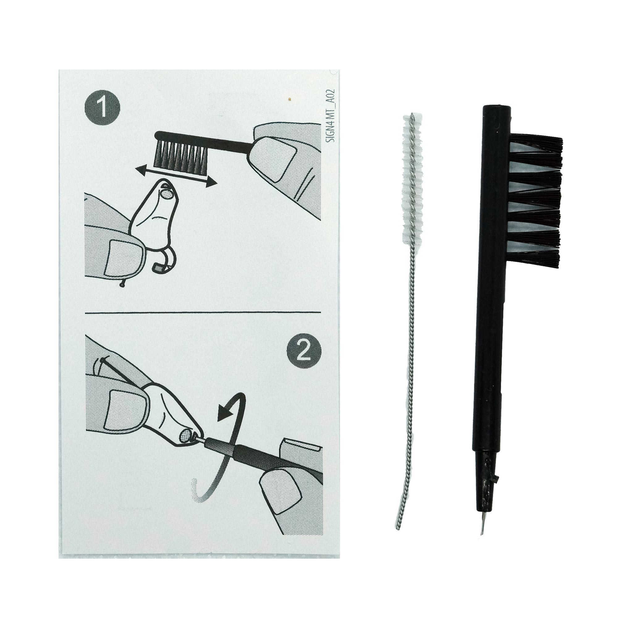 Wyciorek do czyszczenia wkładek wraz z szczoteczką do czyszczenia aparatów słuchowych.